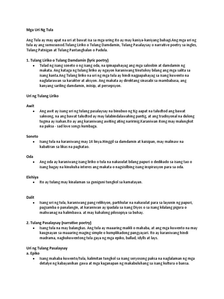 ALSFL1-20 by Peter Breboneria - issuu. Start a multiplayer game. Tulang Liriko o Tulang Damdamin lyric poetry tulad ng isang soneto o ng isang oda na.