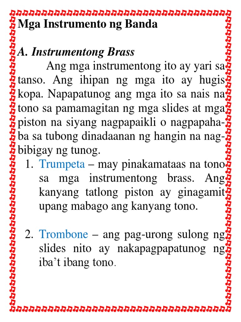 Music VI - Mga Ibat ibang instrumento ng banda by jlimbawan in Types School Work instrumento ng banda und music vi. Mga Instrumentong Bumubuo ng Banda TX p. Mga Instrumento ng Banda A.
